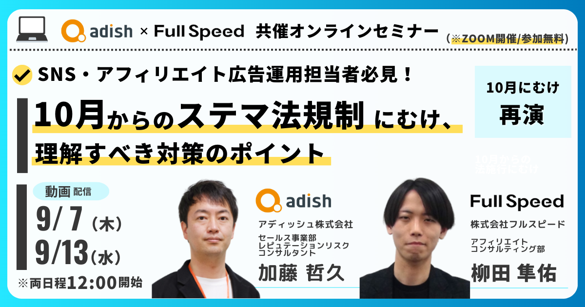 インターネットマーケティング支援を行う株式会社フルスピードは、ローカルビジネスに特化したデジタルマーケティング支援を行う株式会社トライハッチと共催で、「SEO・MEO対策の費用を抑えるためには『土台』が肝心!Googleを最大限活用した店舗集客の方法」と題した無料オンラインセミナーを2023年9月5日(火)に開催いたします。